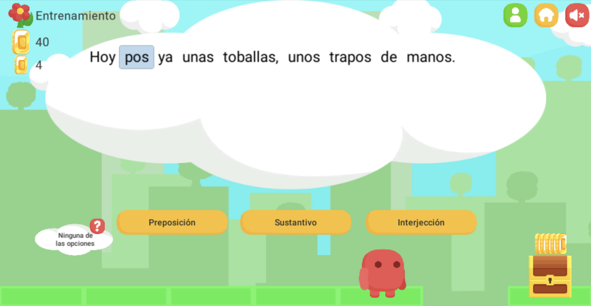 Con el objetivo de clasificar palabras del español dentro de un territorio específico se estimula el respeto a sus variantes jugando. La aplicación pertenece al género de Juegos con Propósito (GWAP) en modalidad arcade 2D, basado en Procesamiento de Lenguaje Natural (NLP, rama de la Inteligencia Artificial). Se dialogará con los asistentes acerca de las ventajas, inconvenientes del uso de datos registrados en otro lugar, posibilidades familia-escuela y el grado de satisfacción en aras de la diversidad con tecnologías del lenguaje.