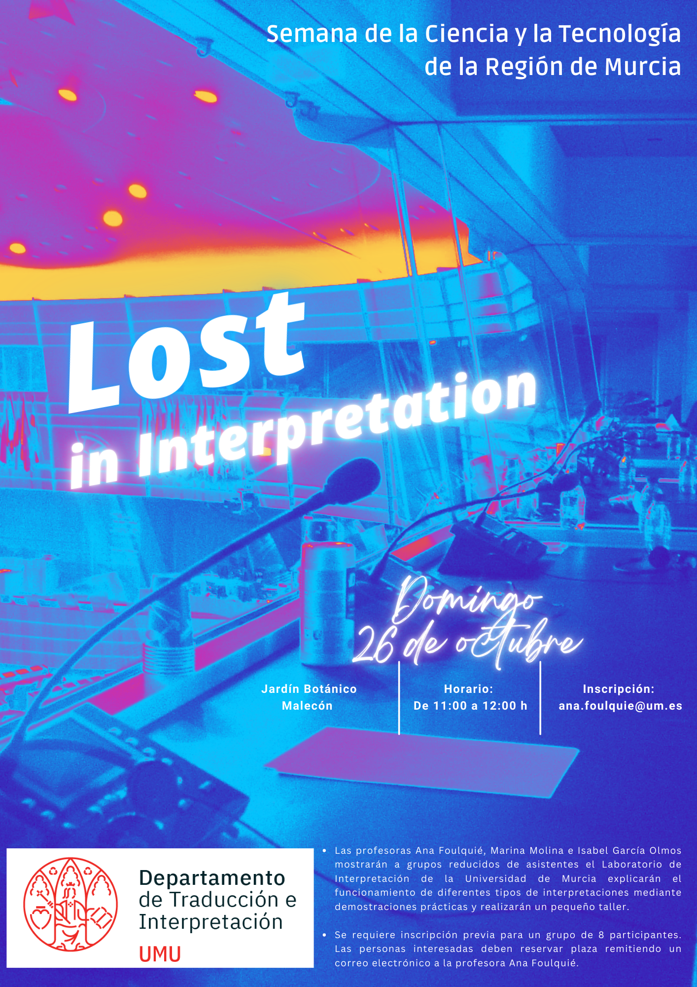 Las profesoras Ana Foulquié, Marina Molina e Isabel García Olmos expondrán una infografía que servirá para que los asistentes conozcan mejor el funcionamiento de las diferentes modalidades de interpretación. Como complemento divulgativo se podrá requerir información complementaria a los profesores y a los alumnos voluntarios presentes en el estand.