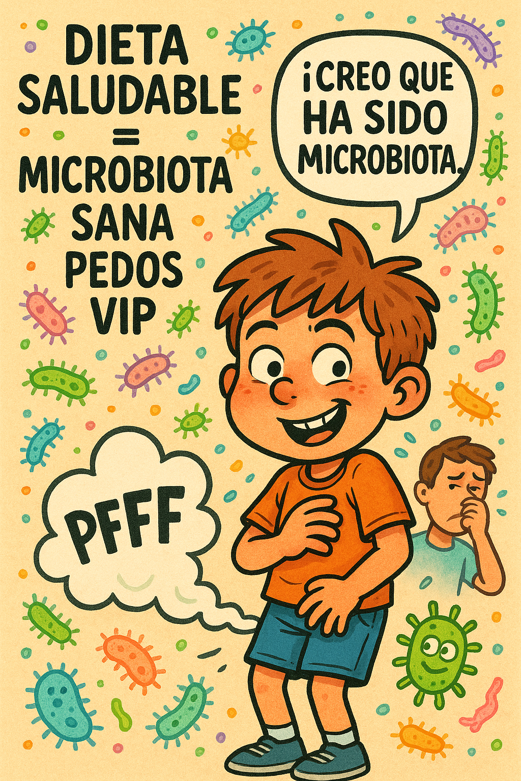 Objetivo de la actividad: educar de forma divertida sobre el rol de la microbiota en la digestión y producción de gases intestinales, y cómo ciertos alimentos influyen en su composición.