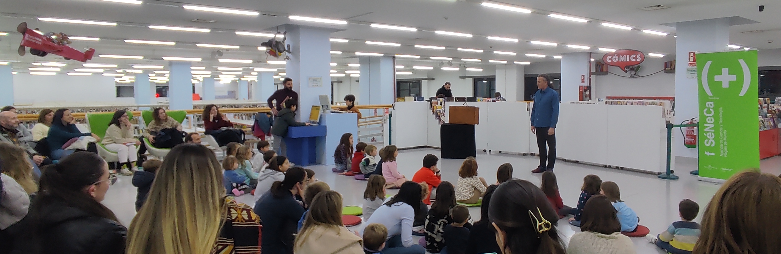 Por primera vez, la Biblioteca Regional de Murcia se suma a la SECYT, creando un rincón de lectura con más de un centenar de títulos infantiles y juveniles relacionados con la ciencia, la tecnología, la creatividad y la invención. Un espacio tranquilo dentro del bullicio del evento, pensado para que los más pequeños descubran que los libros también son una forma de experimentar y soñar.
