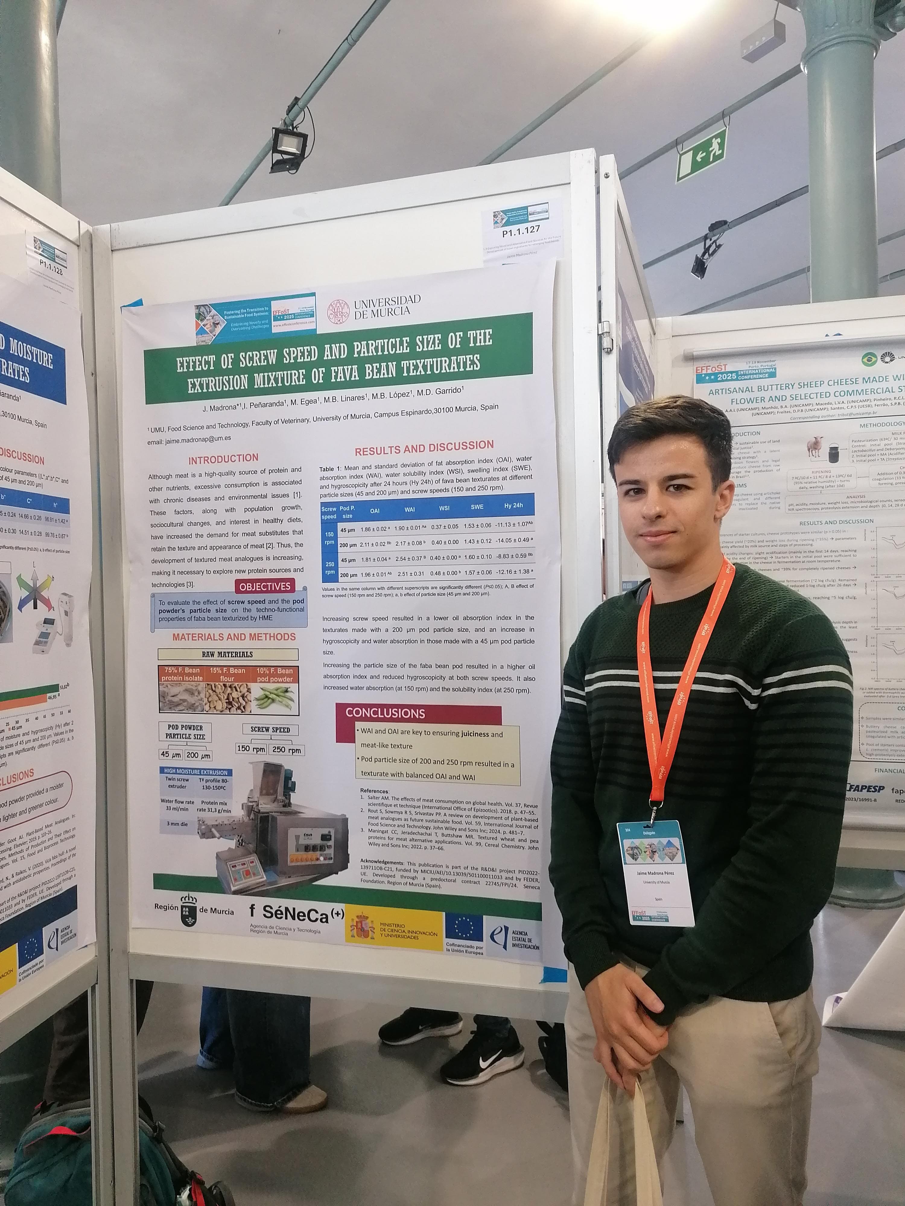 Comunicación de póster en la 39ª conferencia internacional European Federation of Food Science and Technology (EFFoST2025), en Oporto, el 18/11/2025. Título: Effect of pod particle size on colour and moisture content of fava bean protein texturates 4.