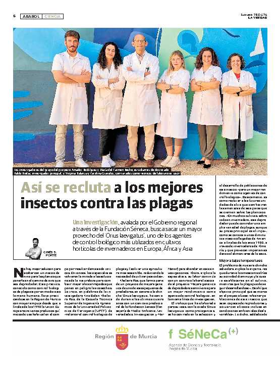 Una investigación, avalada por el Gobierno regional a través de la Fundación Séneca, busca sacar un mayor provecho del 'Orius laevigatus', uno de los agentes de control biológico más utilizados en cultivos hortícolas de invernaderos en Europa, África y Asia