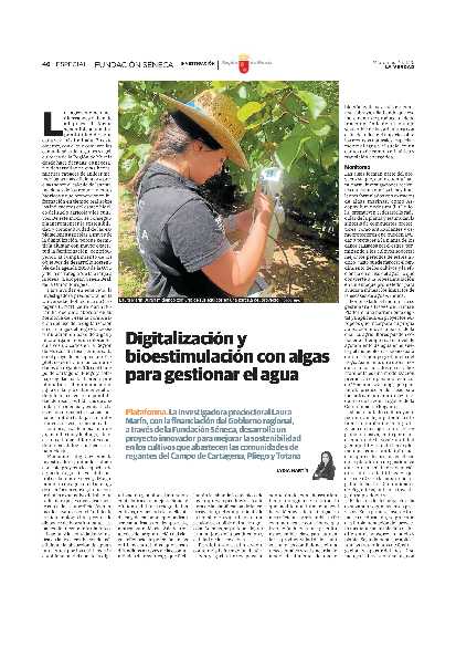 La investigadora predoctoral Laura Marín, con la financiación del Gobierno regional, a través de la Fundación Séneca, desarrolla un proyecto innovador para mejorar la sostenibilidad en los cultivos que abastecen las comunidades de regantes del Campo de Cartagena, Pliego y Totana