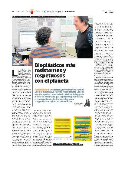 Sostenibilidad. Una investigación financiada por el Gobierno regional, a través de la Fundación Séneca, permite aportar conocimiento a la industria para la mejora de materiales que se pueden aplicar desde el empaquetamiento de alimentos hasta la ingeniería de tejidos en biomedicina